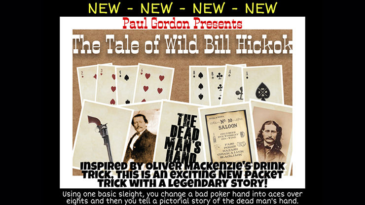 Paul Gordon always thought that Oliver MacKenzie’s trick – however great – has been stuck in the 1970’s of busty barmaids and heavy drinkers. So, The Tale of Wild Bill Hickok is, as we know, a timeless story. This is a magical tale that’ll please both magicians and gambling demonstrators as well as the laymen. Lots of amazing magical changes occur in a short space of time. Easy to do using only one standard sleight. Top-quality antique-effect cards provided and online video tutorial.